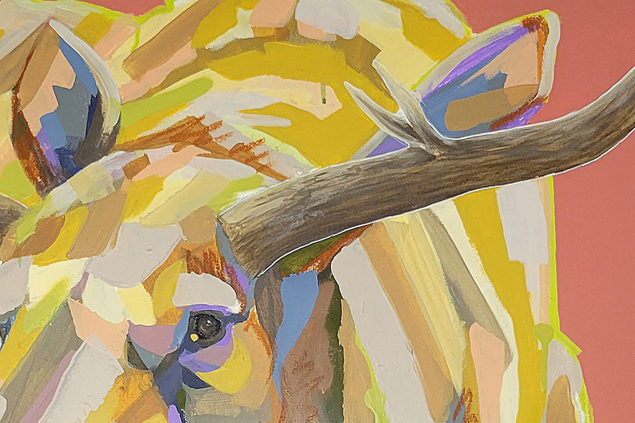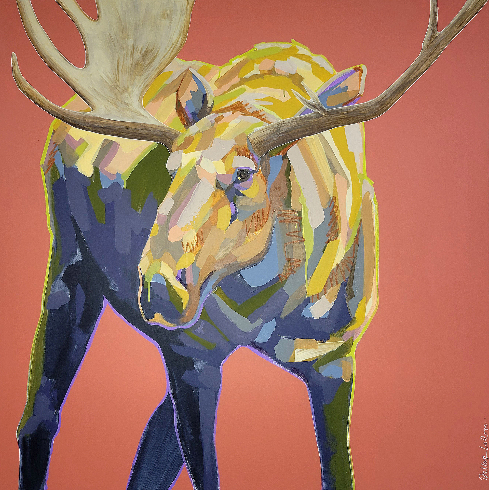 40"x40" / MIXED MEDIA / MOOSE WITH ORANGE / $2700