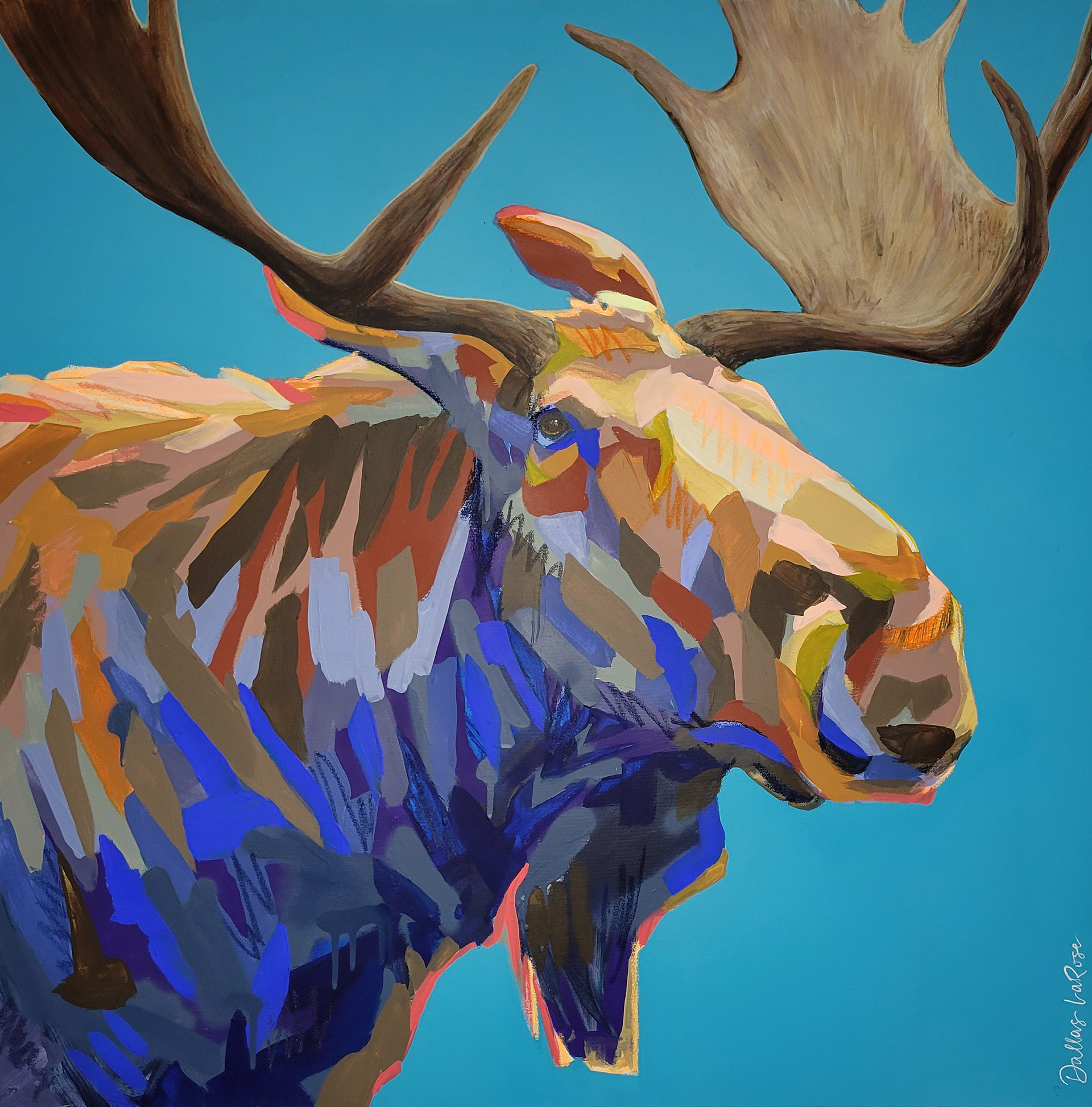 30"x30" / MOOSE WITH BLUE / MIXED MEDIA / $1900