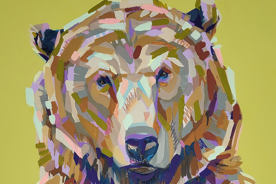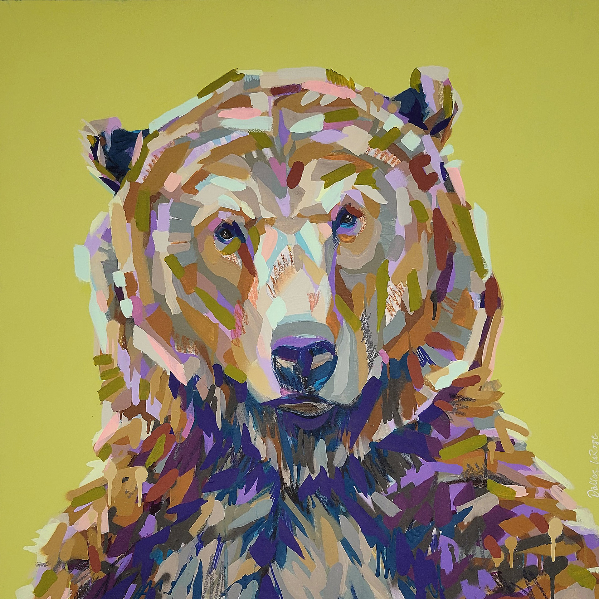 30"x30" / BEAR WITH LIME / MIXED MEDIA / $1900