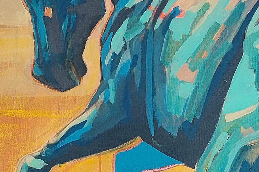 36"x36" / HORSE WITH ORANGE MANE / MIXED MEDIA / $2500