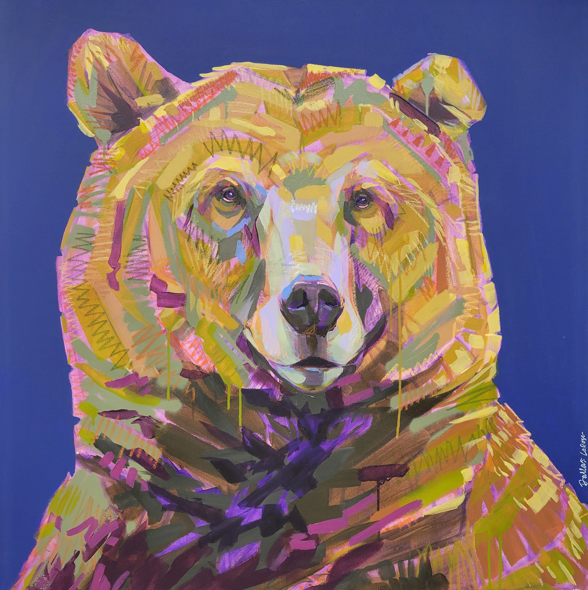36"x36" / BEAR WITH PURPLE / MIXED MEDIA / $2500